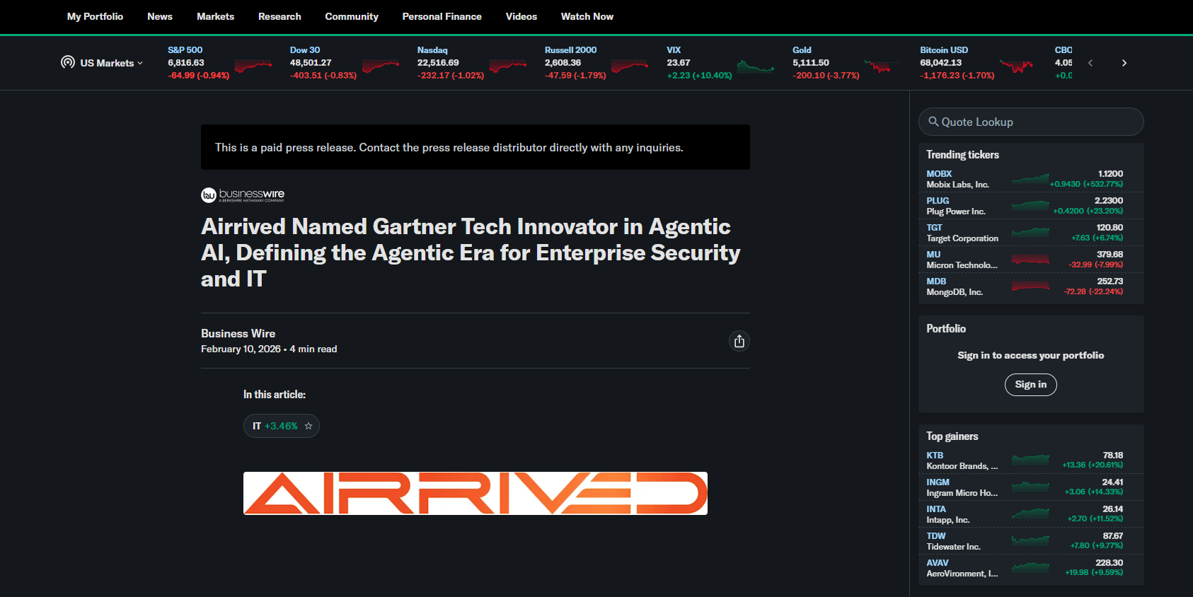 Airrived Named Gartner Tech Innovator in Agentic AINews and Events